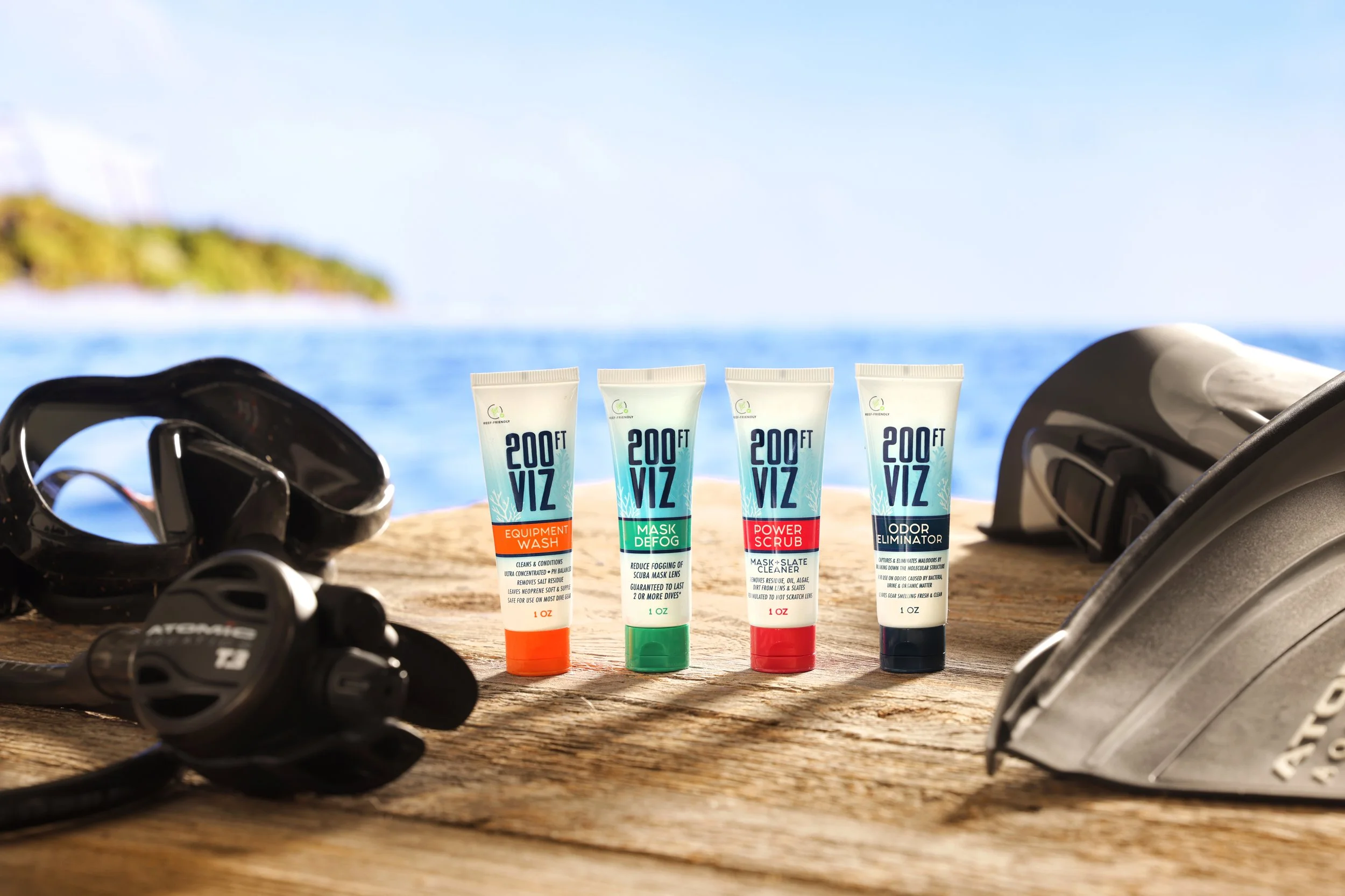 200FT VIZ Mask Scrub should be used on any newly purchased mask, after prolonged storage of the mask, or after dive trips or training. The Mask Scrub helps clean the Scuba Mask of silicone film, makeup, sunscreen, and body oils.